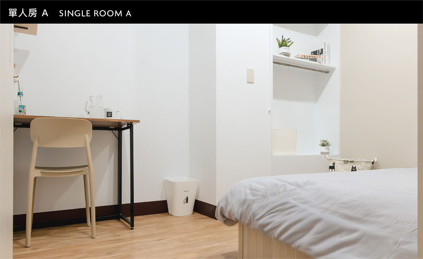 單人房 A | 1 床 | 16,500 / 床 / 月 | 租金已包含能源費(水、電、瓦斯、網路等)、基礎雜支與管理費 |